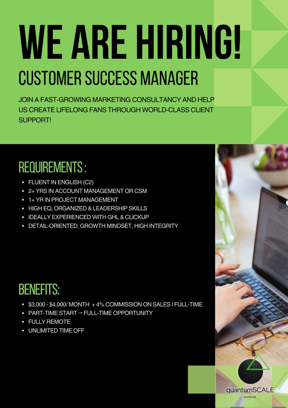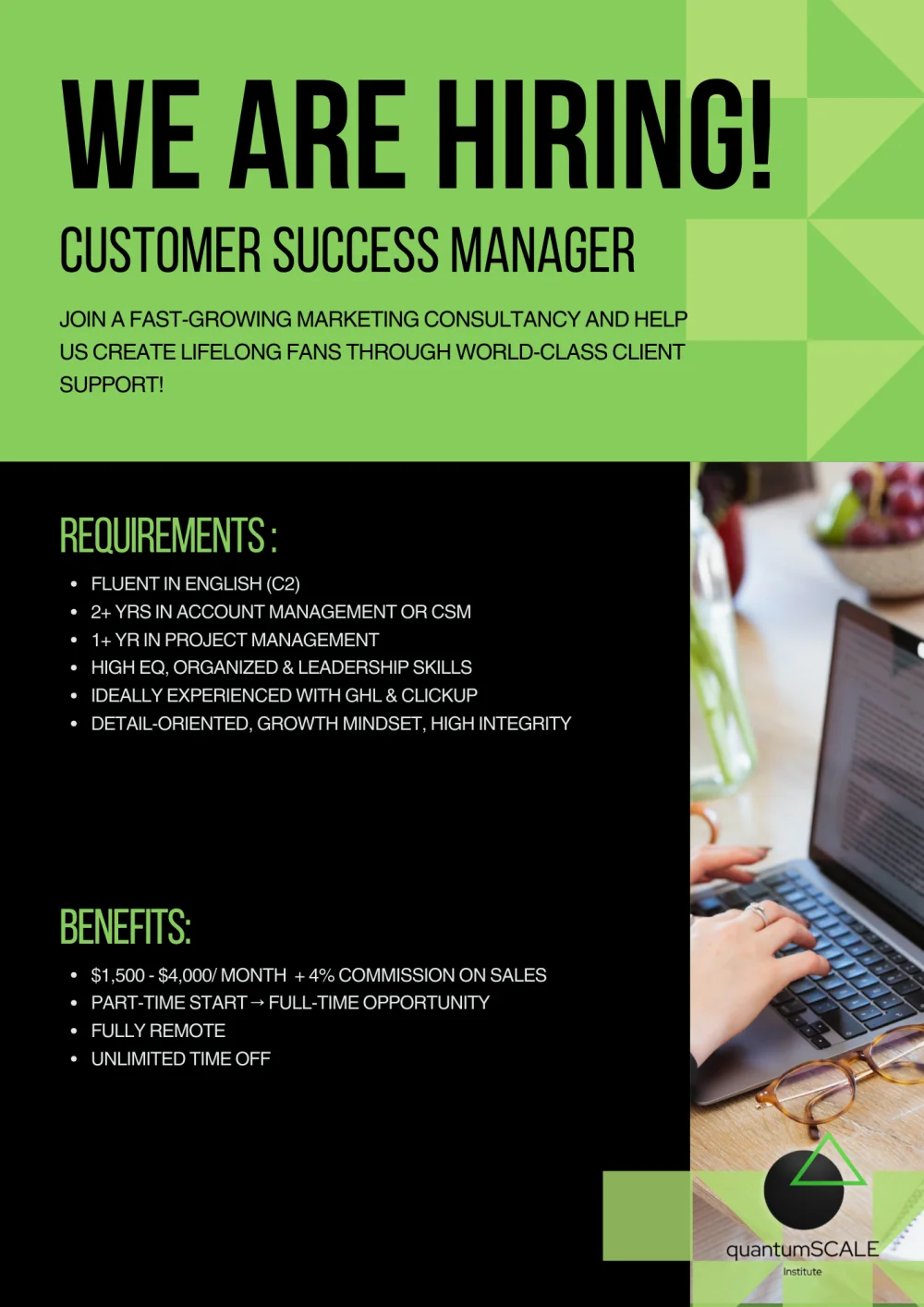 We’re not just looking for someone to fill a role. We’re looking for someone who brings awareness, accountability, and a drive to grow both personally and professionally. Someone who’s not afraid to work smart, face their challenges honestly, and contribute real business value.